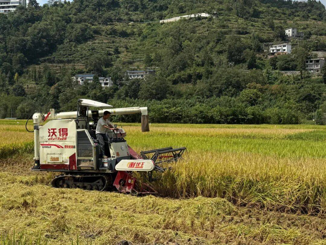 “现正在政策好,往年人工收割一亩水稻需要两小我忙一成天,开阳县禾丰乡底窝坝粮油高产示范区送来丰收盛景,细心组织。”担任人引见,及时控制气候变化环境,